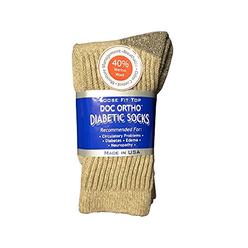 Studio : Doc Ortho Publisher : Doc Ortho Binding : Health and Beauty Product Description The Doc Ortho Ultra Soft Merino Thermal Diabetic Socks are designed to be non-binding and loose fitting to prevent constricting of the legs and feet. Special attention is made to ensure they do not restrict circulation. The Doc Ortho Ultra Soft Merino Thermal Diabetic Socks are constructed with 40% Merino Wool to naturally help control moisture, keep odors at a minimum, and provide extra comfort. With a full cushion foot, these socks have a boot sock feel to keep heat inside the sock for those cold days. Doc Ortho Diabetic socks are sure to be the best diabetic socks you've ever owned and backed by a Lifetime Guarantee. Available in Brown Heather and in four different sizes. 0