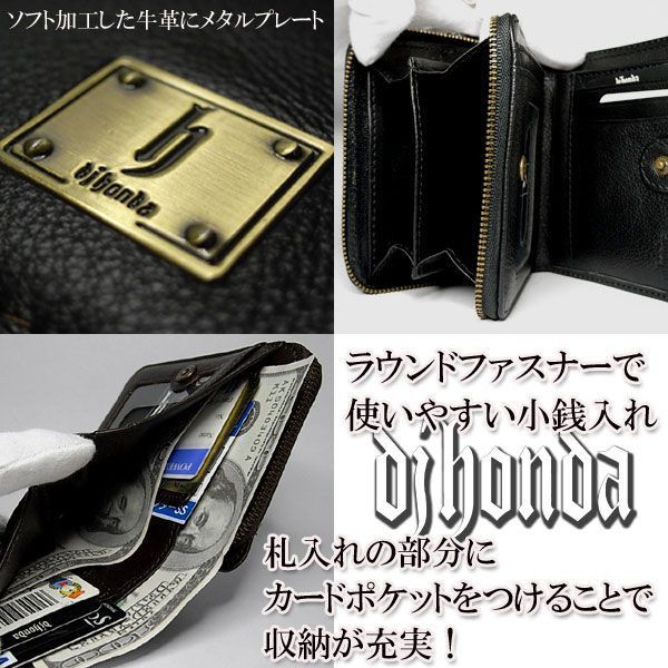 【送料無料】 【ラッピング無料】 【商品詳細】 定期入れも付いたメンズ財布。 小銭入れはラウンドファスナー式です。 通常の二つ折りよりも厚みがありますので、サイズ確認をお願いします。 「h」のプレートロゴと二重ステッチがポイントです。 使い込むほどにあじが出る牛本革。 定番ブラックと上品チョコ色を揃えました。 ご自身用にはもちろん、プレゼント品としても最適です! 専用箱が付いていますので、ラッピングしてお届けします。 ■メーカー:DJホンダ ■素材:牛革 ■カラー:ブラック、チョコ ■サイズ(cm):ヨコ11.5*タテ9.5*マチ3.5 ■小銭入れ:ラウンドファスナー式(2部屋) ■札入れ:2部屋 ■定期いれ:1 ■カード入れ:7 ■ポケット:4 ( 父の日 クリスマス 誕生日 ビジネスマン 送料込み 贈り物 バレンタイン 男性用 サイフ さいふ パスケース プレゼント 中学生 ファッション)