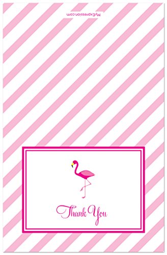 These bright thank you cards have a hot pink flamingo on a white text frame with hot pink double borders and a light pink diagonal stripped background. Thank you note cards are the perfect way to show your attendees your gratitude.