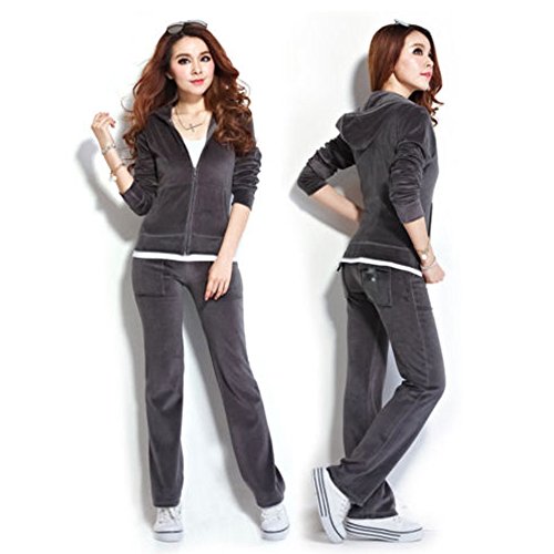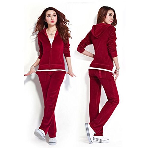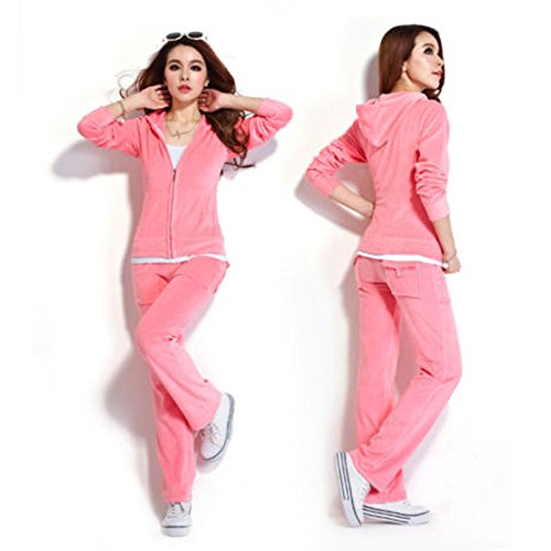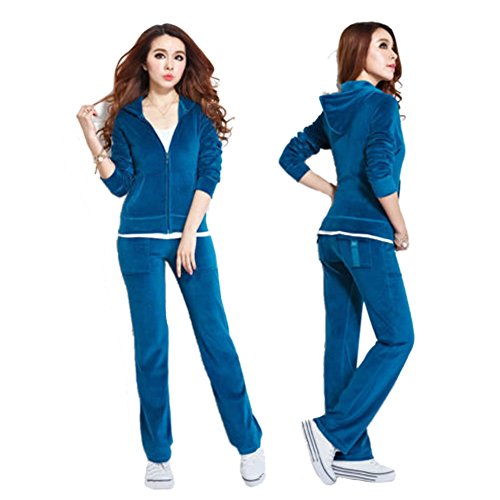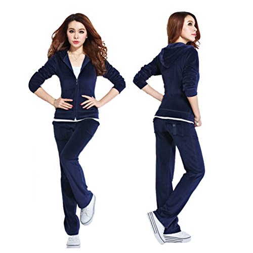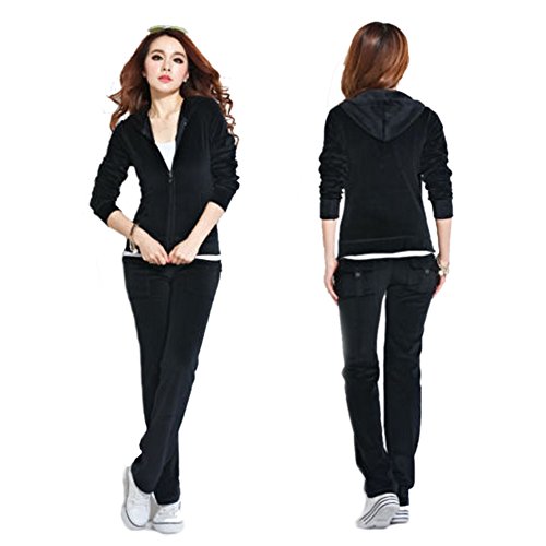| SPRINGWIND Women'S Velour Hoodie Pant Tracksuit Sport Sweat Suit Set |