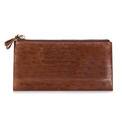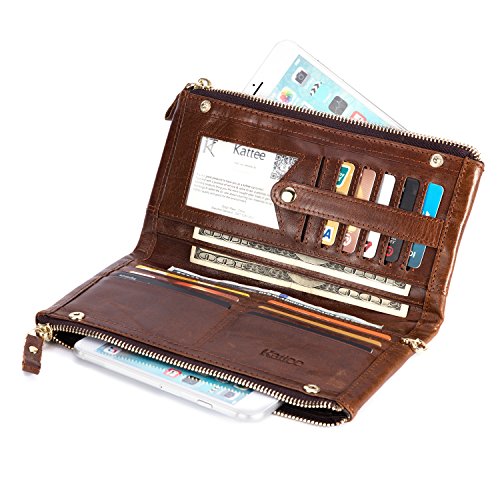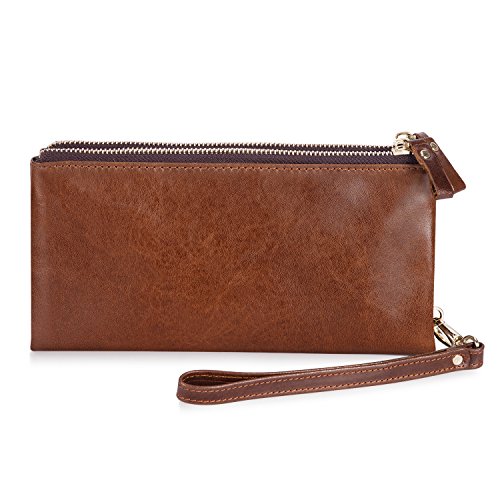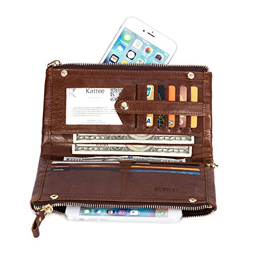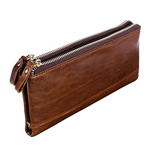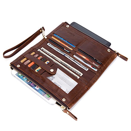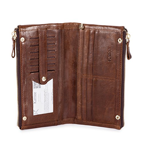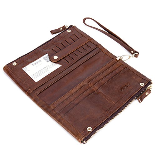 -. Title : Kattee Unisex Real Leather Long Wallet Double Zipper Clutch Purse