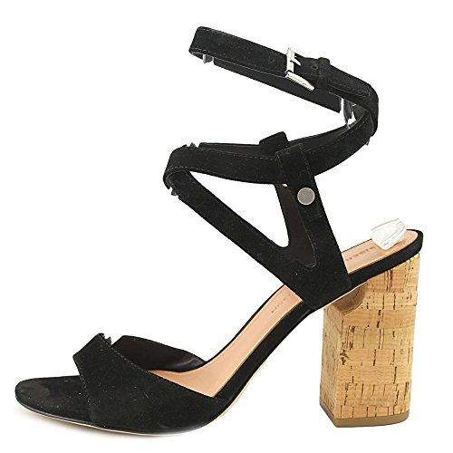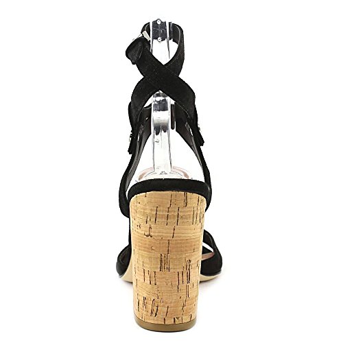 Product DescriptionSoft suede Sigerson Morrison sandals, styled with straps that wrap around and buckle at the ankle. Chunky cork heel with rubber cap. Leather sole.0