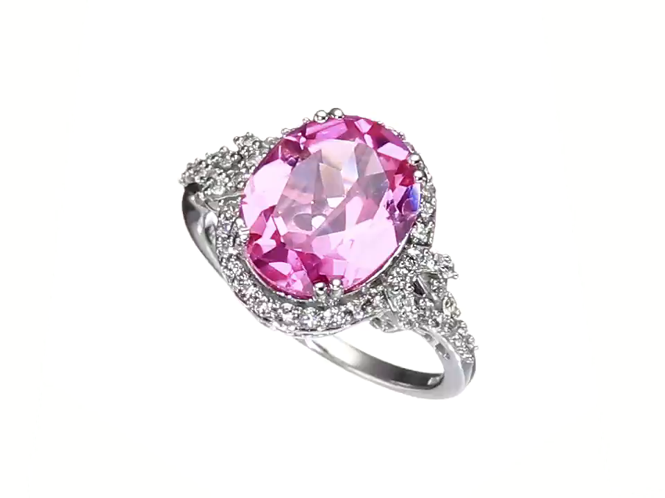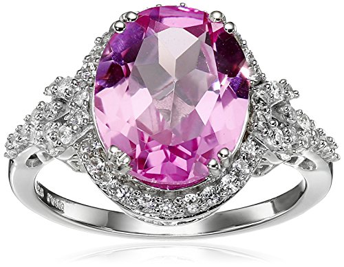 Sterling Silver Oval Shape Created Pink Sapphire with Round Created White Sapphire Ring, Size 7