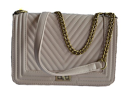 -. Brand : Stony West -. Department : womens -. Feature : PU leather quilted chevron design front and back, Turn lock closure / Pull-through chain shoulder strap can be worn doubled or extended to full length. Antique gold tone chain accents. strap not removable / Dimension: 10" L x 7"H x 3" W, Approx. drop down length - 13" / Interior zipper pocket, Lining vinyl / New with tags -. ProductGroup : Shoes -. ProductTypeName : HANDBAG -. Size : Medium -. Title : NUDE BLUE BLACK BROWN DESIGNER LOOK STITCHED SHOULDER PURSE