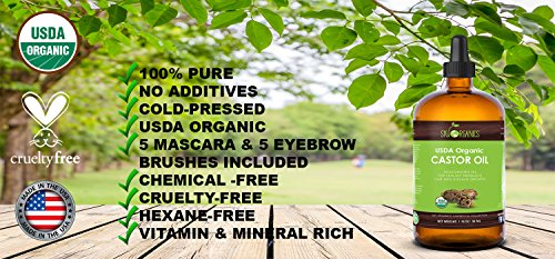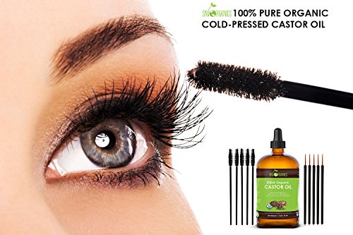 BEAUTIFUL EYELASHES - Thicker, fuller, stronger looking lashes! 5 EYELINER APPLICATOR BRUSHES for Simple Application to Lashes and 5 EYEBROW Applicators for eybrows.. GREAT FOR THE SKIN AND HAIR: Rich in vitamins and Omega-6 fatty-acids, castor oil promotes better hair growth and helps nourish and hydrate the skin.