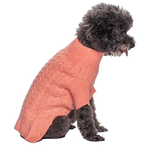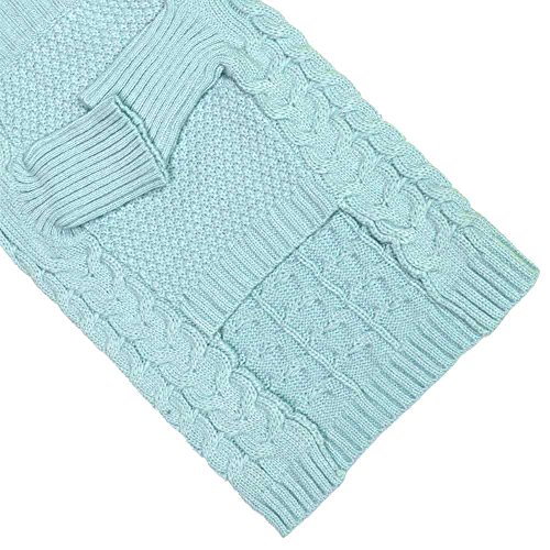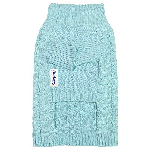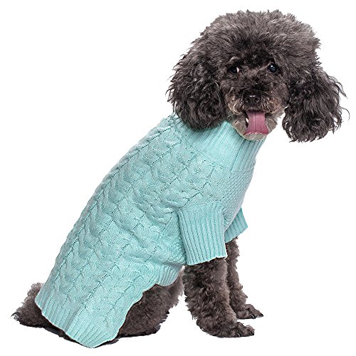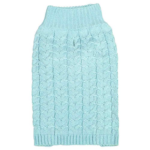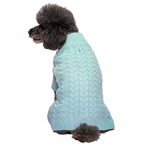 Our sweater design is great for small to medium sized dogs with back length from 8" through 20". This classy fashion piece is a great of our designer's modern take on the old-school cable knit. Woven with the picked shade of aquamarine, this sweater represents the perfect classic style on your pooches. This adorable sweater also feature specially designed sleeves to protect your precious pooches during cold months without interfering them for outdoor activities!Feature