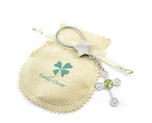 -. Feature : ★Cross 4 Protection ! Engravable means you can engrave words on the star and heart of the keychain. / ★Best Gift for Anyone, Friends and Family, Birthdays and Weddings, Business and Graduation, for any Celebrations! Good Luck in Your Pocket with You and Protect You!! / ★MEANINGS Every 1000,000 clovers, only 1 has four leaves. It brings you good luck. And Good Luck is P.R.Iceless! ● The First Leaf is for LOVE. ● The Second Leaf is for GLORY. ● The Third Leaf is for FORTUNE. ● The Fourth Leaf is for HEALTH. / ★FREE GIFTS (Total $10 Value for FREE ! ): ● ① Free Original Lucky Clover Brand Gift Pouch and Shopping Bag, 3.5"X4.5", Luxury Suede Fabric (Deer Skin Feel). $5 Value. ● ② Free Meaning Post Card, 4"X5.5", Tells you the meaning of this unique jewelry. $1 Value. ● ③ Seller Fulfilled Free Shipping. $4 Value. / ★Extra Care Needed. Extrem Cold Weather May Casue Themal Expansion and Frozen Glue, and the Clover Piece May Fall Off. In case it happens, please contact seller.