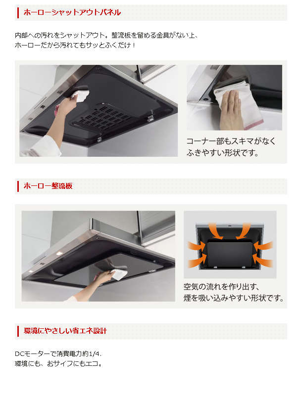 ●内部への汚れをシャットアウト。整流板を留める金具がない上、