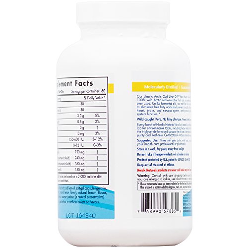 Studio : Nordic Naturals Publisher : Nordic Naturals Binding : Health and Beauty Product Description Our classic Arctic Cod Liver Oil has always been derived from 100% wild Arctic cod (Skrei)?no other fish oils or synthetic additives are ever used. Unlike fermented oils, our cod liver oils are manufactured to eliminate free fatty acids and prevent rancidity. By managing every step of the supply chain, we ensure the exceptional quality, safety, and sustainability of our products' from boat to bottle. 0
