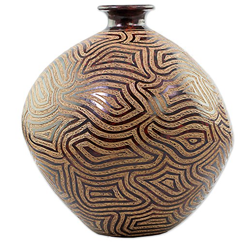 NOVICA Decorative Ceramic Vase, Brown and Red, 'Expansive Thoughts'