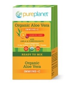 Studio : Pure Planet Products Publisher : Pure Planet Products Binding : Health and Beauty Product Description Organic Aloe Vera Immune C 15 ct BoxProduct Description The perfect anytime drink for your body and immune system. This delicious organic aloe vera drink mix boosts immunity and satisfies thirst. It includes organic amalaki (Indian gooseberry), turmeric, acerola powder, and pomegranate for natural vitamins, minerals, and antioxidants. Pure Planets Organic Aloe Vera Immune C is a highly soluble aloe vera coconut water supplement, containing organic amla, acerola cherry, and pomegranate, known for their rich, whole food-based Vitamin C content. Plus turmeric to help support healthy bacteria levels in the body. Use Pure Planets Organic Aloe Vera Immune C for overall immune support and hydration. It is an easy to mix, great tasting supplement that is the perfect way to start a healthy day. Supplement FactsAmount Per Serving% Daily Value***Total Fat0g0%Sodium Fat0g0%Trans Fat0gCholesterol0mg0%Sodium55mg2%Total Carbohydrates7g2%Dietary Fiber1g4%Total Sugars3gPotassium140mg4%Organic Coconut Water Powder2450mg*Organic Apple Powder1560mg*Organic Lemon Powder240mg*Organic Acerola Cherry Extract160mg*Organic Aloe Vera 2001 Inner Leaf Extract160mg*Organic Pomegranate Fruit160mg*Organic Amalaki Fruit150mg*Organic Tumeric Root80 mg* ***Percent Daily Values are based on a 2,000 calorie diet