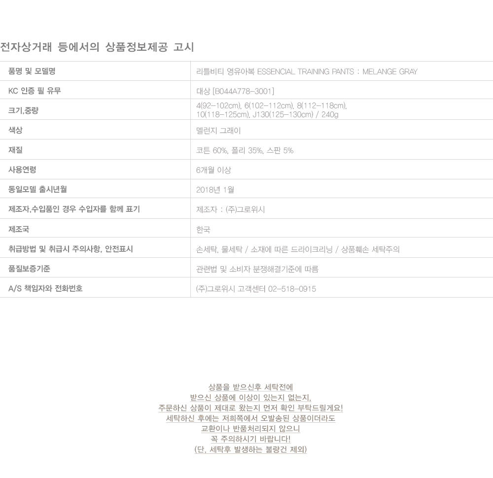 트레이닝 팬츠는 핑크, 블루 두 가지 컬러와 기본컬러인 멜런지 그래이