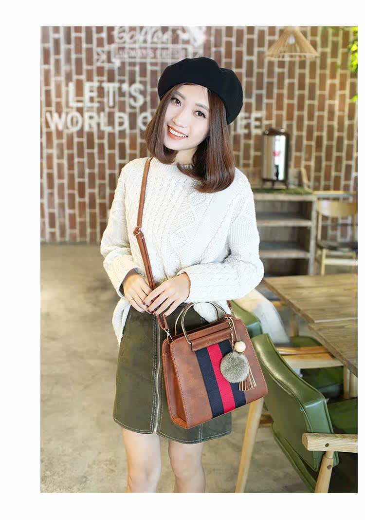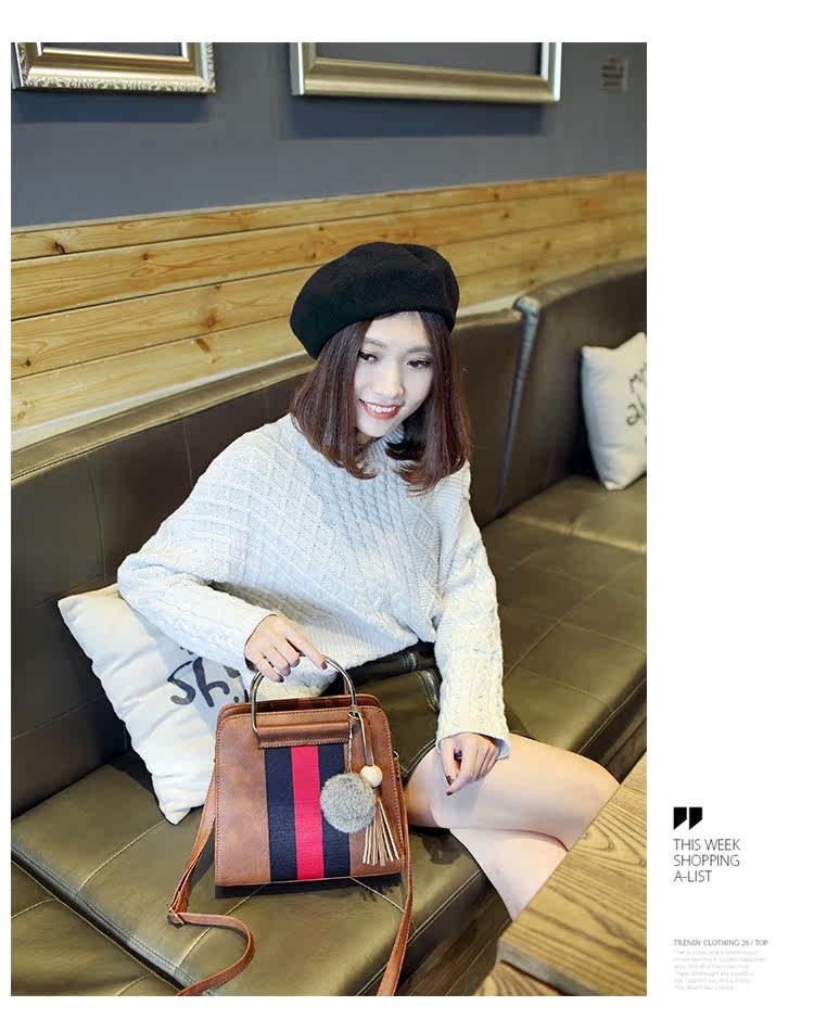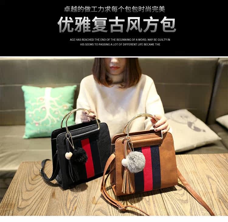 新款秋冬韩版毛球复古手提包大包斜挎单肩包潮