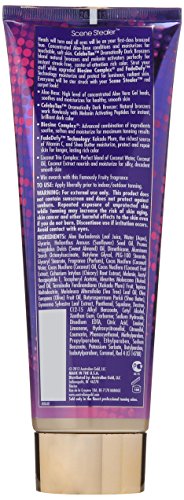 Aloe-based, exceptional dark tanning blends with maximum amounts of tanning skincare ingredients. Heads will turn and all eyes will be on your first-class bronzed hue. Concentrated Aloe-Base conditions and moisturizes for touchable, soft skin. CelebuTan Dramatically Dark Bronzers blend natural bronzers and melanin activators perfectly for instant streak-free, center of attention rich color. Strut your stuff while upgraded Biosine Complex and FadeDefy technology moisturize and protect for luminous, radiant skin. Fragrance: Famously Fruity. Aloe-based CelebuTan bronzer. Biosine Complex. FadeDefy technology.Feature