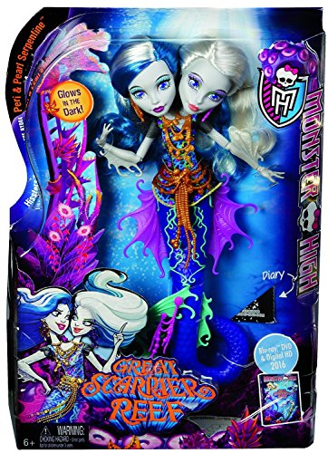 Studio : Mattel Publisher : Mattel Binding : Toy Product Description This new Monster High character is double the trouble -- and the clawesome fun! The two-headed daughter of the Hydra, Peri and Pearl are twin sisters who may have their own minds but not their own bodies. Two heads, a serpentine tail -- that allows doll to stand on her own -- and webbed accents are monsterrific details. Glow-in-the-dark accents are creepy cool. Colors and decorations may vary. 0