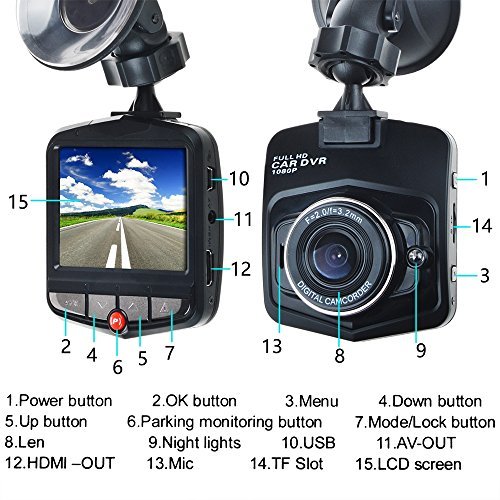 JerGO Full HD 1080P Car Vehicle HD Dash Camera DVR Cam Night Vision Recorder Black [병행수입품]망원경 오페라 글라스
