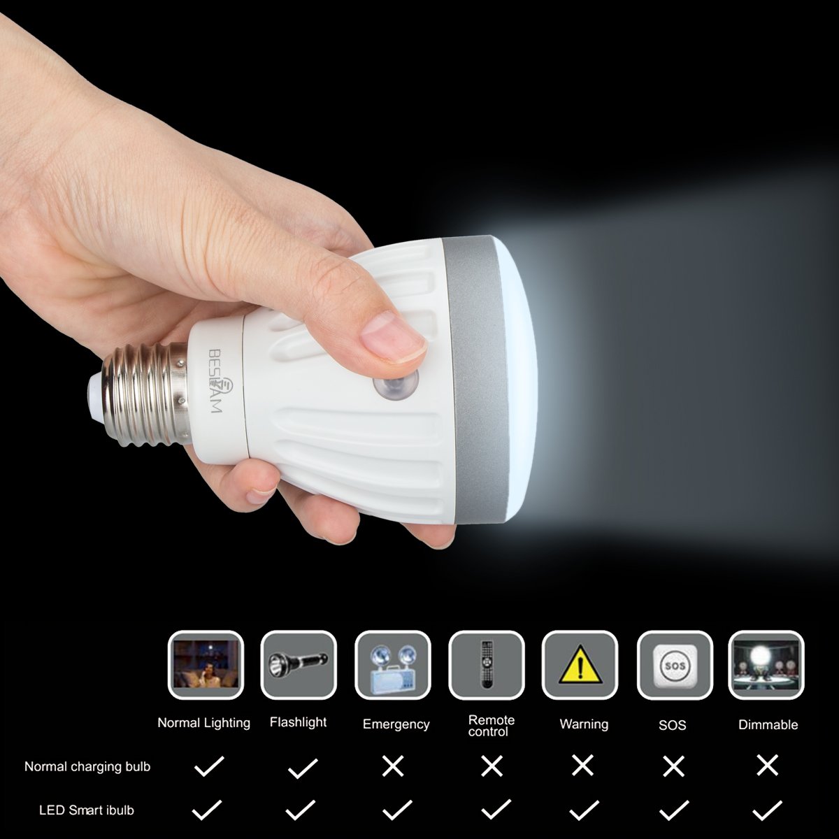 The light bulb automatically detects power outage and switches to emergency mode, and the built-in lithium battery