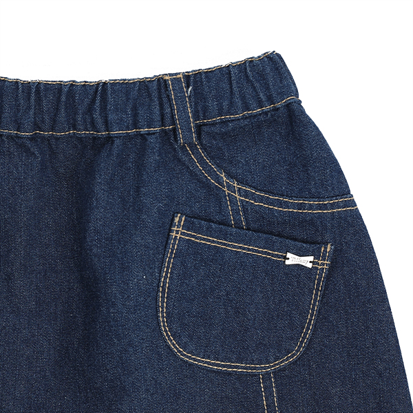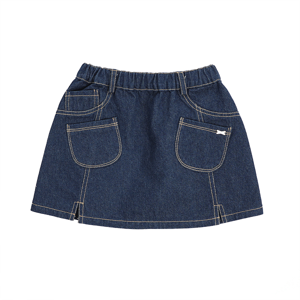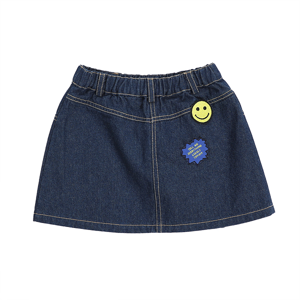 색상-블루사이즈-110,120,130,145,155상세설명 -데님소재의 스커트로 앞부분에 밑단트임과 뒷부분에 와펜장식이 포인트를 주는 데님 스커트 입니다.