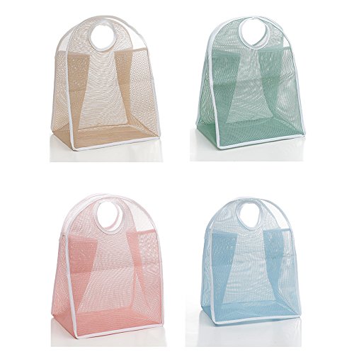 Blue Mesh Nylon Hanging Laundry Bag Organiser Storage Pouch Packing Multifunctional Portable Mesh Basket for Bedroom Wall Closet