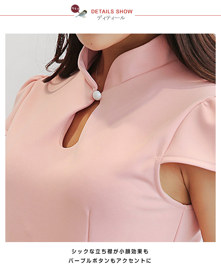 | 優雅なレディを演出するチャイナドレスパフスリーブがガーリーな可愛さをアピール胸もとのデザインがデコルテを綺麗にメイク1枚でデートやパーティーでは大活躍のプチプラアイテム♪ | |