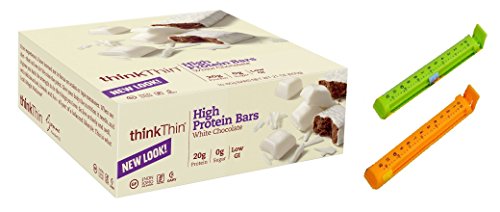 -. Feature : Thinkthin Protein Bars , Plus 2 Food Storage Bag Sealer Clips with expiration date reminders / 20g of protein with 0g of sugar ( Salted Caramel 10g protein,5g Sugar ) / Gluten free and low glycemic / Always Fresh