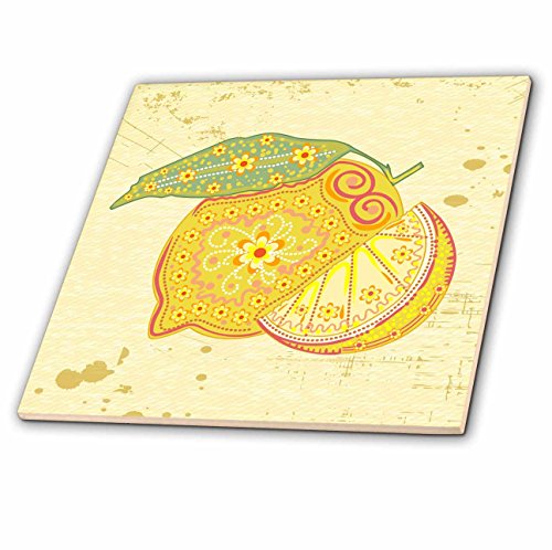 3dRose Ornate Vintage Stylized Lemon Floral Fruit Illustration-Ceramic Tile, 12" (ct_104553_4)