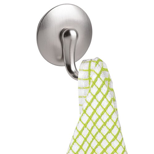 mDesign AFFIXX, Peel-and-Stick Adhesive Storage Hook for Dish Hand Towels, Keys, Coats, Hats - Set of 3, Brushed Nickel
