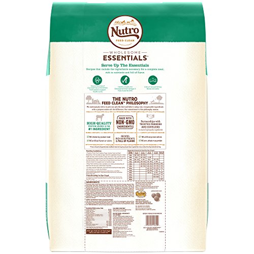 NUTRO WHOLESOME ESSENTIALS Large Breed Puppy Pasture-Fed Lamb & Rice Recipe Dog Food always starts with pasture-fed lamb and is made with high-quality nutrients like glucosamine and chondroitin. This dog food contains calcium to build strong bones and joints and omega 3 fatty acids like DHA to support the growth and development needs of your large breed puppy. . NUTRO Food for Dogs always follows the THE NUTRO FEED CLEAN philosophy, is always made with Non-GMO* Ingredients and contains no artificial flavors, colors or preservatives. *Trace amounts of genetically modified material may be present due to potential cross contact during manufacturing.