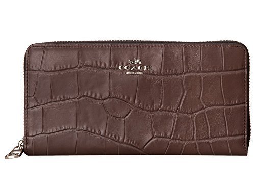 -. Binding : Accessory -. Brand : Coach -. Color : mink -. Department : womens -. EAN : 0888067579864 -. Feature : Silver hardware with croc embossed leather body / Zip around closure, leather and fabric lining inside / Inside features 12 card slots, center zip compartment, multiple full length bill compartments / Approximately 7.75" (L) x 4" (H) x 1" (W) -. Model : 52424-SVMIK -. MPN : 52424-SVMIK -. PartNumber : 52424-SVMIK -. ProductGroup : Shoes -. ProductTypeName : HANDBAG -. Size : Medium -. Title : Coach Embossed Croc Accordion Zip Wallet 52424 Mink -. UPC : 888067579864 Crafted in croc-embossed leather, this wallet has a luxuriously textured finish and an elegant look. The hand-finished design has 12 card slots, zip compartment and two full-length billfolds inside.