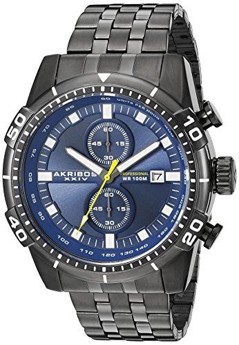 -. Title : Akribos XXIV Men's AK852BKBU Round Blue Dial Chronograph Quartz Gray Bracelet Watch