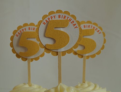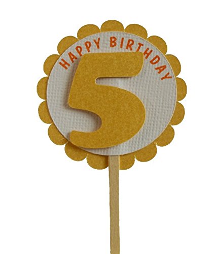 All About Details Shimmer Gold 5th Birthday Cupcake Toppers, Set of 12