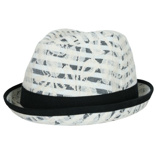 Product Description ililily Lace Covered Pattern Printed Cotton Fedora Diamond Top Pork Pie Hat Medium size 7 1/8 - 7 1/4 Various 6 colors an available Diamond crown pork pie hat Pattern fabric fedora wrapped in ivory lace Washed cotton hatband trilby