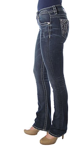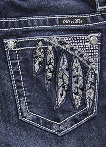 -. Title : Miss Me Women's Feather Embellished Slim Boot Cut Denim Jean