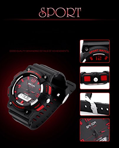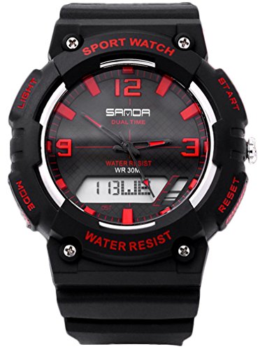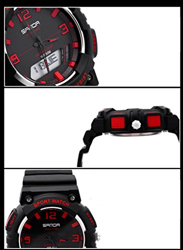 -. Title : Dual Movement Analog Quartz lectronic Sport Watch Chronograph Automatic Waterproof Wristwatches Black+Red