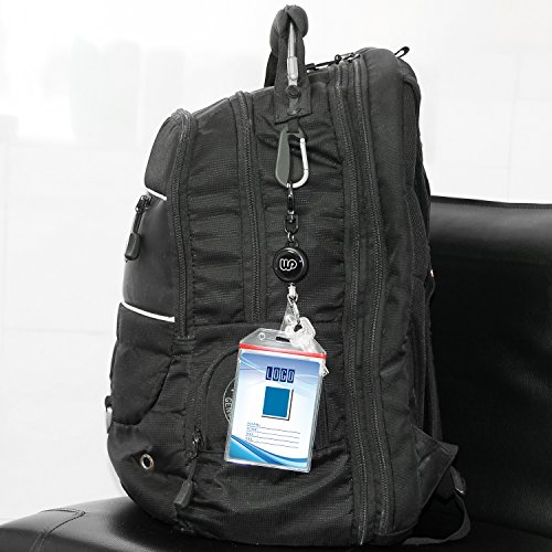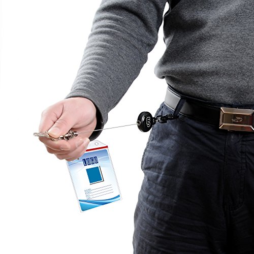 Retractable Badge Holder, Wisdompro Heavy Duty [1 Retractable Reel + 2 ID Card Badge Holders] with Lobster Clasp Swivel Belt Clips and Key Ring for Keychains - Vertical