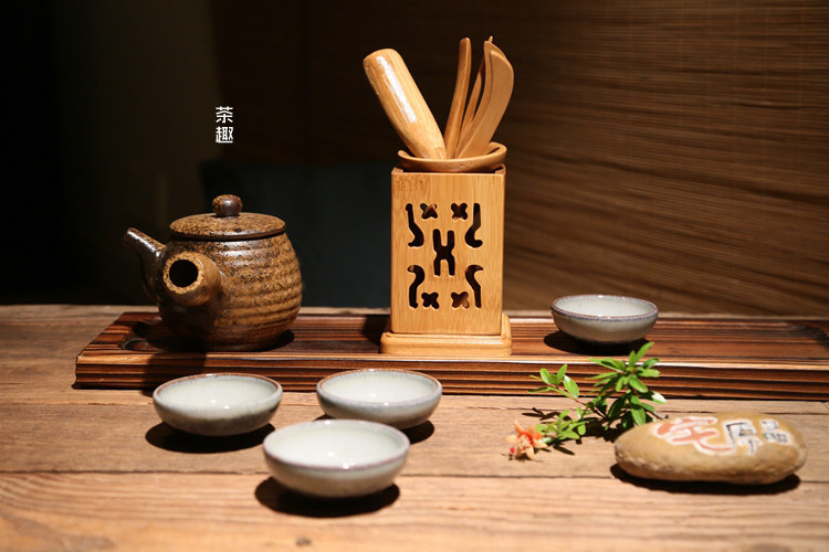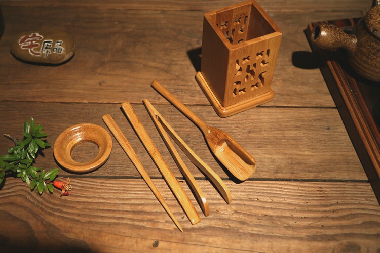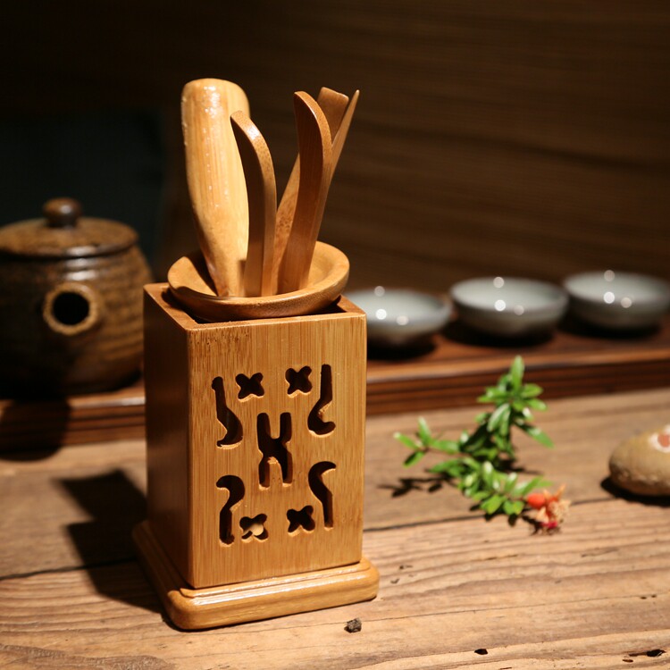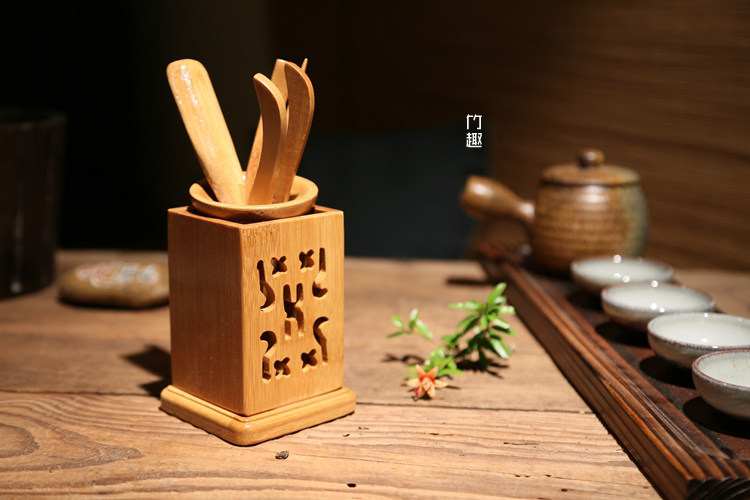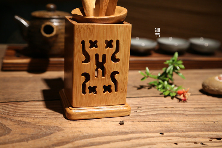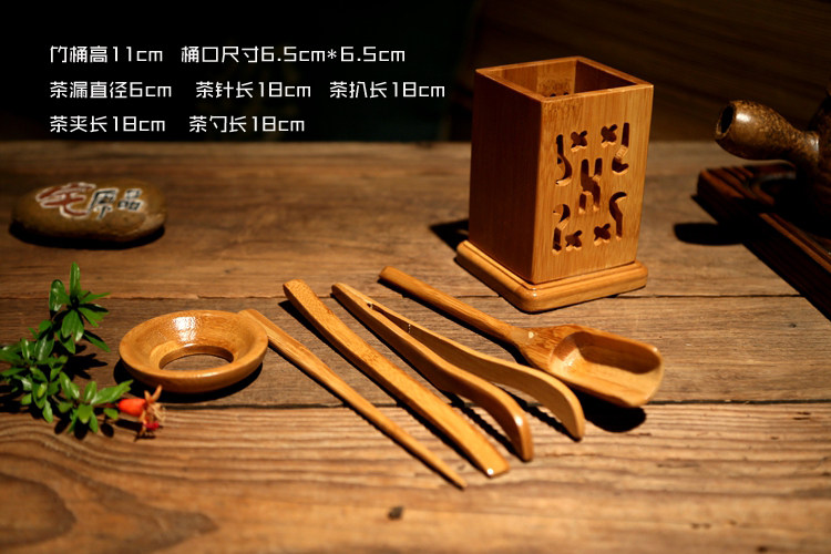Product Size: bamboo height 11cm, bunghole 6.5 * 6.5cm tea strainers diameter 6cm; needle tea / Tea Pa / tea folder / teaspoon average length 18cm