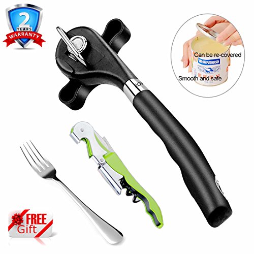 Manual Can Opener, Smooth Edge Safe Cut Stainless Steel Food Grade New Upgraded Ergonomic Anti Slip Grips Handle Easy Open and Durable