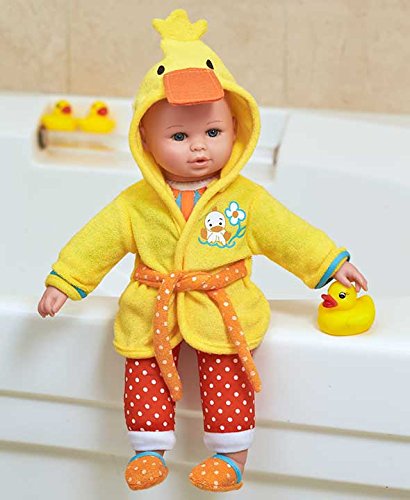 -. Feature : Designed to take in the bath / 4-Pc. set includes: / 13" Doll, Robe, Slippers and Duck / Vinyl and polyester, All fabric items, machine care< / For ages 2 and up