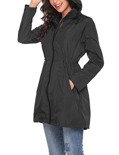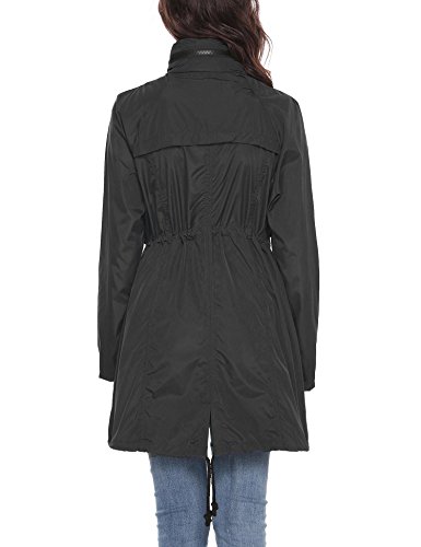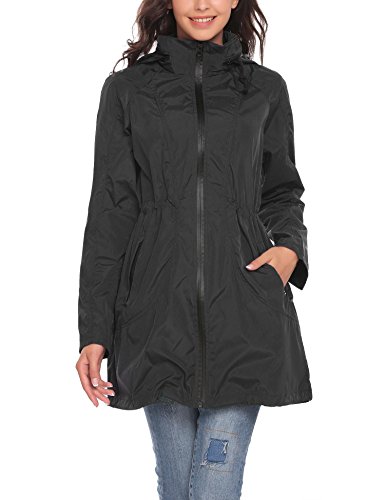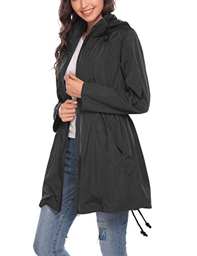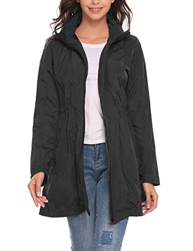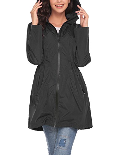 Elesol Womens Lightweight Travel Trench Waterproof Raincoat Hoodie Windproof Hiking Coat Black/L