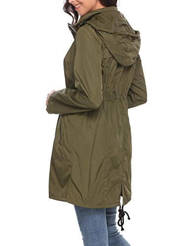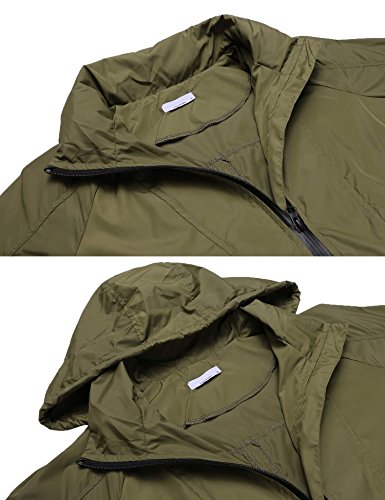 Elesol Women Waterproof Lightweight Rain Jacket Outdoor Hooded Raincoat Army Green/S