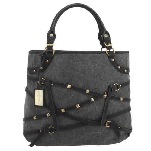 -. Brand : Buffalo David Bitton -. Color : Black -. Department : womens -. EAN : 0844179028812 -. Feature : Cotton Canvas With straps and studs / Top Magnetic closure, Double Handles / Gold Hardware, Logo Hanging Tag / Fully lined interior with zip and open pocket / Bag: 15.5 x 13 x .3 (WxHxD) -. Label : Buffalo David Button -. Manufacturer : Buffalo David Button -. Model : B6CO147EQ -. MPN : 6CO149EQBK -. PackageQuantity : 1 -. PartNumber : 6CO149EQBK -. ProductGroup : Shoes -. ProductTypeName : HANDBAG -. Publisher : Buffalo David Button -. Size : One Size -. Studio : Buffalo David Button -. Title : Buffalo David Bitton Tatum Tote- Black -. UPC : 844179028812