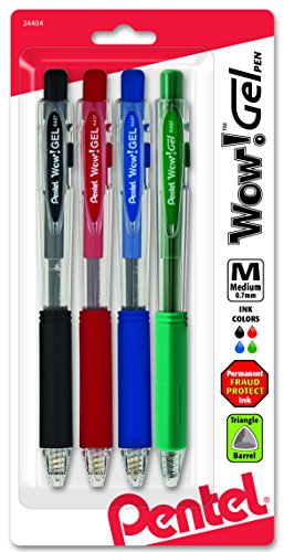 -. Title : Pentel Wow! Gel Colors Retractable Gel Pen, 0.7mm, Medium Line, Assorted Ink, 4 Pack (K437CRBP4M1)