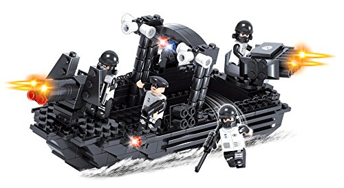 -. Feature : Creative Building Kit for kids to build a police vessel SWAT boat with action team with lots of features for pretend play! / Imaginary play time for kids, pretend rushing as a SWAT police man to the busy shores and rescuing the day and being the HERO! / Includes 4 S.W.A.T. Police action figures, 1 police SWAT boat vessel, many assorted weapon artillery guns and more heavy gear accessories. / Educational objective for brick toys will help kids develop lateral thinking, problem solving, creativity, organization and planning while constructing pcs together. / Compatible to all major building brick brands parts, Creative construction blocks are for boys and girls between the ages 6 year old and 12 year olds