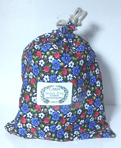 CARIA Wild Pistacia & Olive Oil (Bittim) Round Soap bars x 3 in a gift bag Genuine Turkish