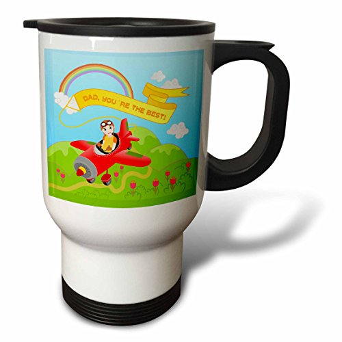 3dRose Kid Flying Red Airplane, Rainbow, Clouds, Message for Dad, Stainless Steel Travel Mug, 14-Oz