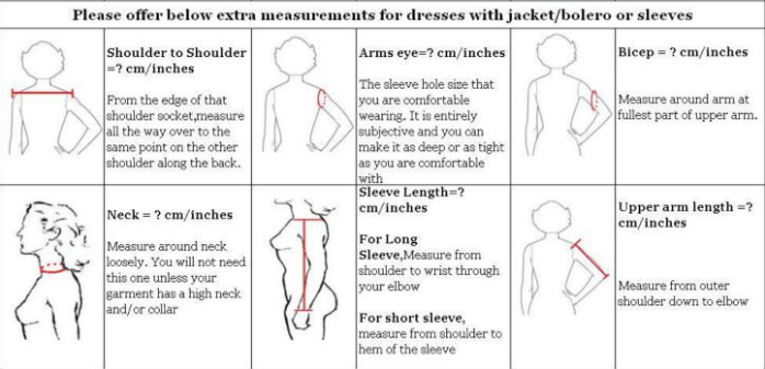 Other measurements(Dress with Jacket or Sleeves):