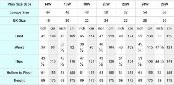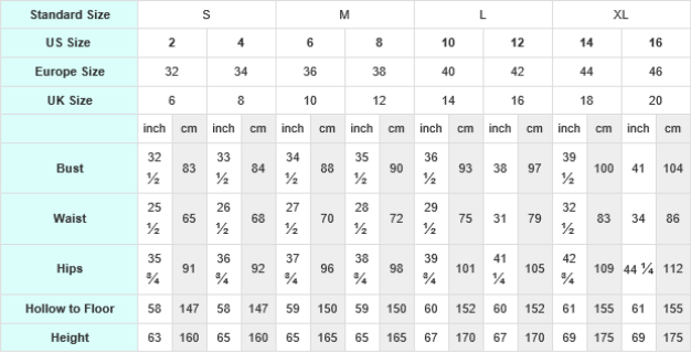 Don’t worry if you don’t fall exactly into a category, we're here to help you! For Custom Made Dress, please complete the format below and offer us when you place the order.
