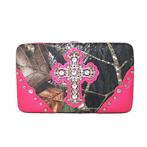 Title : Rhinestone Cross Western Camouflage Women's wallet in 7 Colors (Hot Pink)