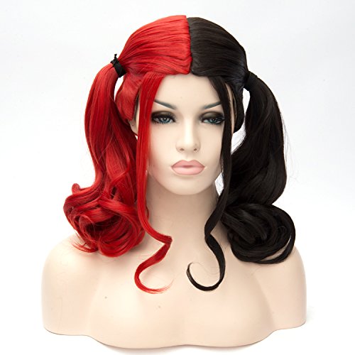 Title : Harleen Quinzel Cosplay Wig Harley Quinn Costume Lolita Curly Pigtail Hairpiece Suicide Squad 18" 45CM (Red Black)
