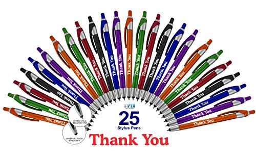 "Thank You" Greeting Gift Stylus Pens For TouchScreen Devices - 2 in 1 Multifunction Pen - Compatible With Tablets, iPads, iPhones 25 pack